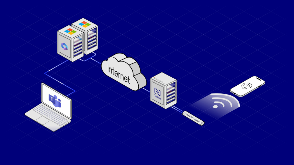 Le client Teams va d’abord dialoguer avec l’IPBX de Microsoft. Puis, celui-ci va, à son tour, communiquer avec notre infrastructure, et passer sur nos trunks. Enfin, l’appel est acheminé sur le smartphone ou le téléphone fixe de l’interlocuteur.